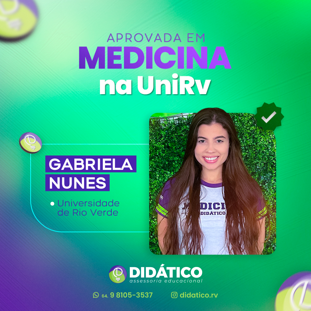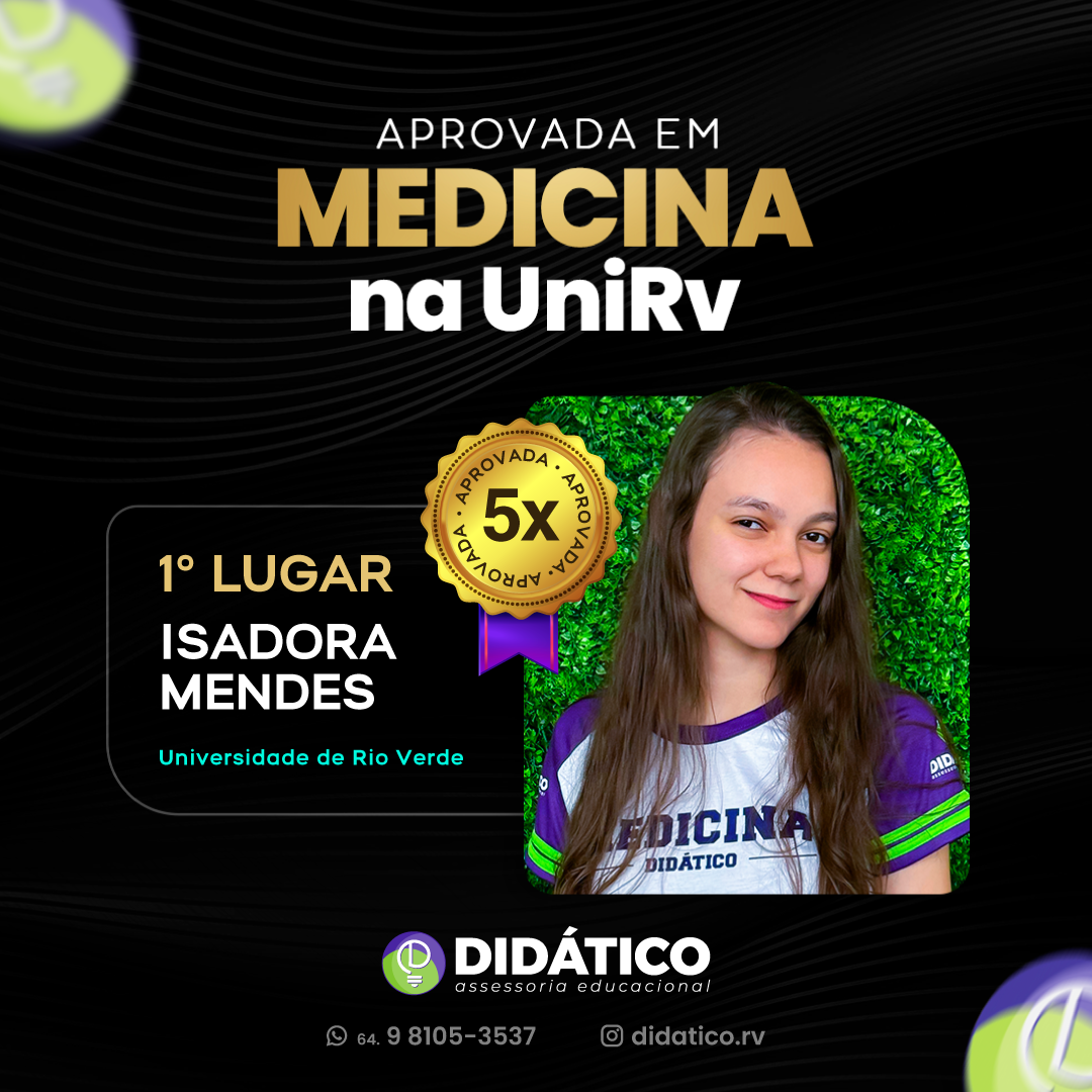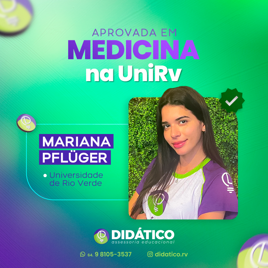 "Aprovada em Medicina na UniRV, no ano de 2024/2. Reconhece que o ensino Ditático fez a diferença!"